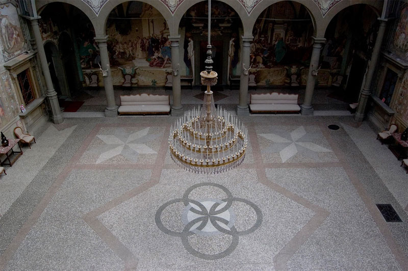 Die Wandmalereien in der Kapelle im ersten Stock und in einigen Zimmern entstanden erst während der Herrschaft der Lothringer, wohingegen das Schloss seine heutige Gestalt (die Glas-Eisen-Konstruktion, die den Hof überdacht, seine Umwandlung in einen großen Ballsaal und die Anordnung der Möbel) dem Haus Savoyen zu verdanken hat. Zu diesem Zwecke brachten die Savoyer verschiedene Stoffe und Einrichtungsgegenstände aus ihren Residenzen in Turin, Modena, Lucca und Parma mit.